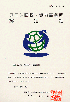 フロン回収協力事業所 認定証